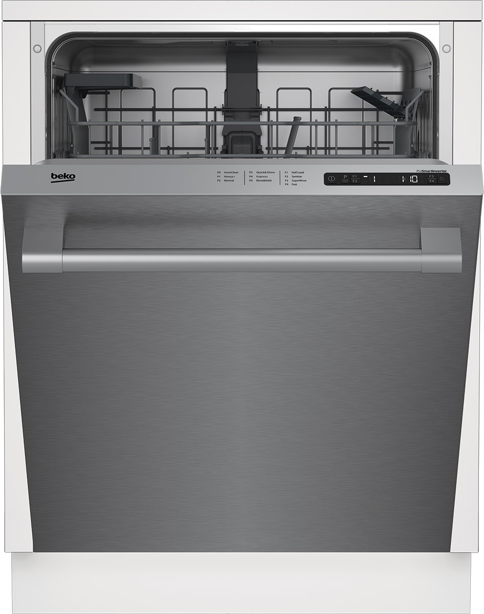 For a spotless clean, look no further than this Beko pro-style integrated dishwasher. Place your dishes on the 3-position upper-rack and spacious lower-rack and hit your desired function—like half-load, sanitize, or quick & shine—and you’re set to go. Check on the status with a glance at the red LED indicator light and spend your precious time on the more important things. Complete with the ENERGY STAR® Most Efficient rating, this built-in dishwasher is exactly what you need.