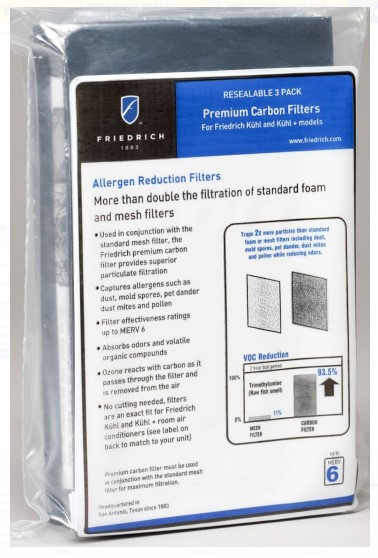 The Friedrich Premium Carbon Filters remove odors and VOCs (volatile organic compounds). Achieve up to a MERV 6 rating when used with standard filter. Unmatched for quality, ease, and control.Read More