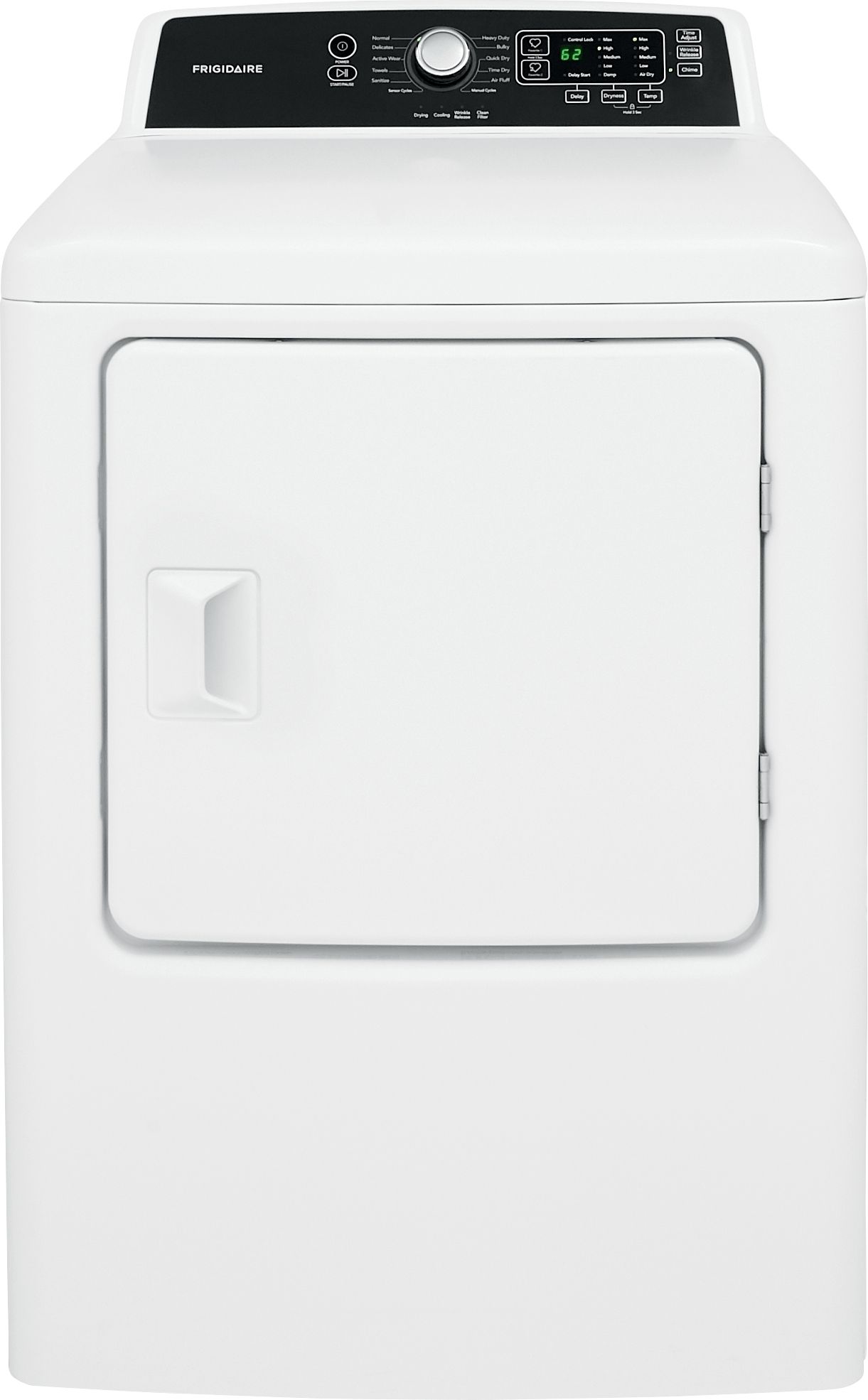 The Frigidaire 6.7 Cu. Ft. Large Capacity Free Standing Electric Dryer allows you to fit more in every load. Dry clothes fast and save time with the Quick Dry Cycle. Meet all of your drying needs with 10 convenient dry cycles such as Bulky, Active Wear and Sanitize. Also enjoy less ironing with the Anti-Wrinkle function that helps reduce wrinkles.Read More