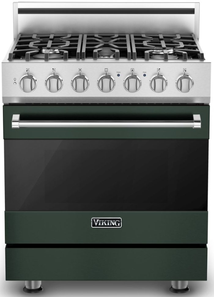 The freestanding gas self-clean sealed burner range offers all the exceptional features expected in a Viking range wrapped in ultra-chic design and grace. The new 5-burner configuration delivers precision control of varying BTUs on each burner along with the ability to move your pots and pans seamlessly across the surface. Inside the oven, the combination of a 30,000 BTU u-shaped burner and 15,000 BTU broiler provide unrivaled along with the convenience of self-clean.Read More