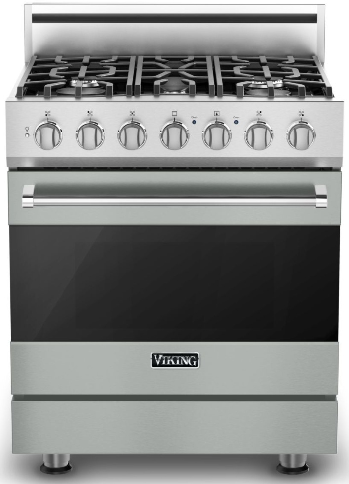 The freestanding gas self-clean sealed burner range offers all the exceptional features expected in a Viking range wrapped in ultra-chic design and grace. The new 5-burner configuration delivers precision control of varying BTUs on each burner along with the ability to move your pots and pans seamlessly across the surface. Inside the oven, the combination of a 30,000 BTU u-shaped burner and 15,000 BTU broiler provide unrivaled along with the convenience of self-clean.Read More